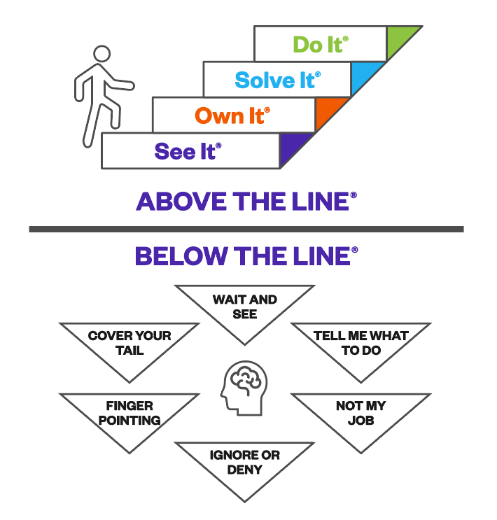 This application meeting dives deeper into the concepts of Above the Line and Below the Line behavior and outlines the 16 Accountability Best Practices to bolster accountability within the organization. These Best Practices provide all employees with tasks and actions they can immediately implement in their day-to-day to take greater accountability for results.