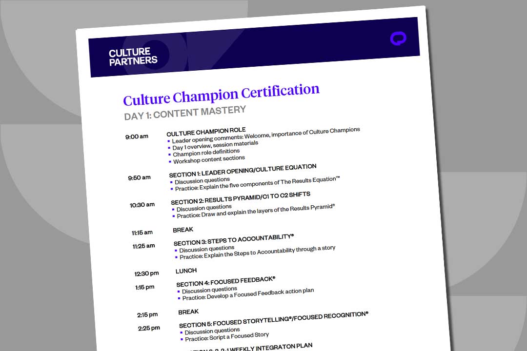 Culture Champion Certification Workshop Agenda