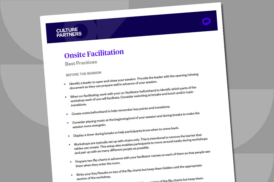 This document provides tips, recommendations, and best practices for Culture Champions that facilitate a Culture Alignment Workshop (both virtual and onsite).