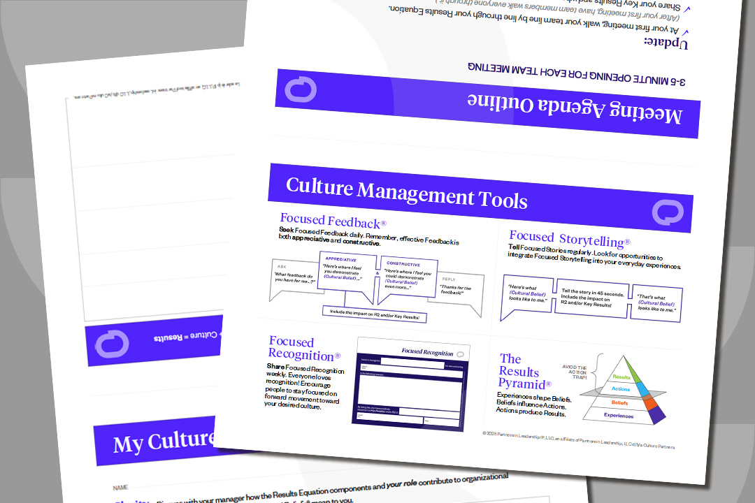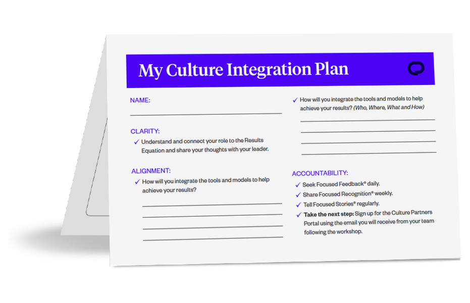 This practical tool is designed to help participants embed the principles and practices introduced during Culture Workshops. It reinforces key models taught at the workshop and allows participants to reference and internalize the culture management tools.