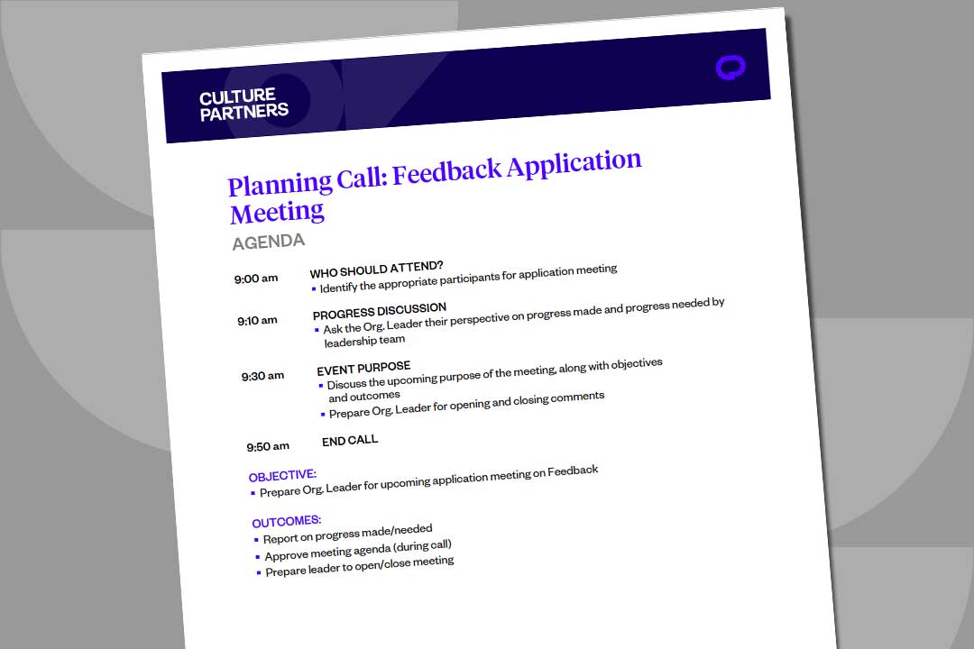 This document outlines the agenda for the planning call that precedes the Feedback Application Meeting. This document covers who should be at the meeting, as well as the purpose, topics, and logistics for the Application Meeting.
