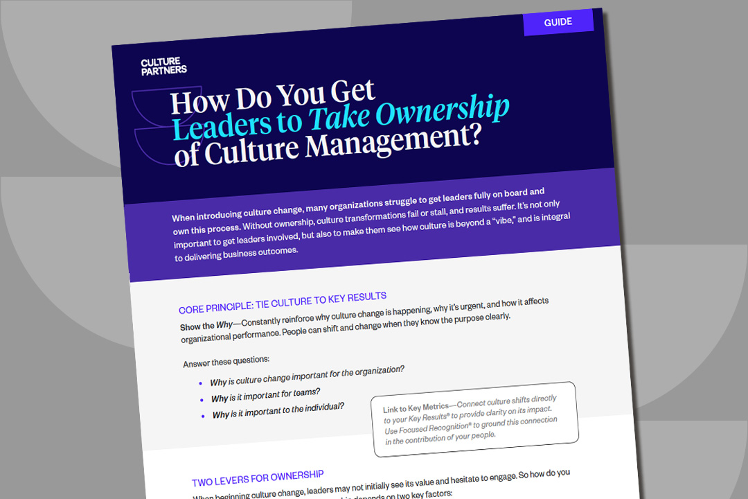 This guide explains the Why and levers of leader ownership. Get your leaders fully on board and own the culture transformation process.