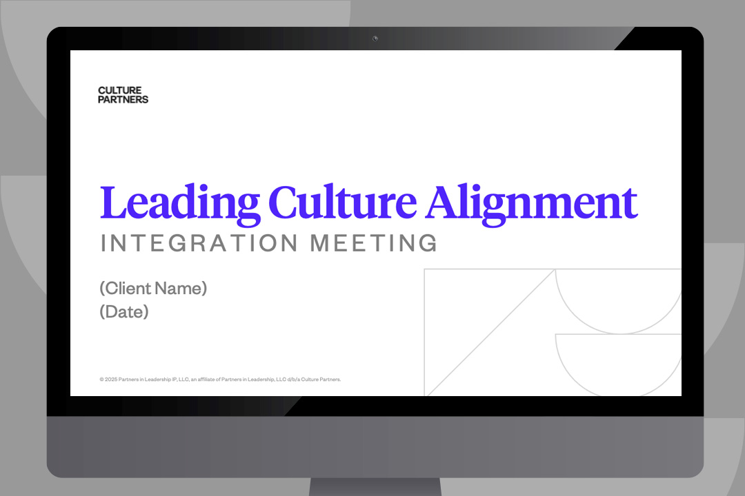 This PowerPoint deck provides the materials for the Leading Culture Alignment Integration Meeting. This meeting focuses on understanding your role as a culture leader.