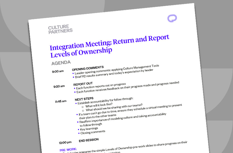 This document outlines the agenda for the Levels of Ownership Return and Report Meeting. It covers the schedule, objectives, outcomes, and pre-work for this Integration Meeting.