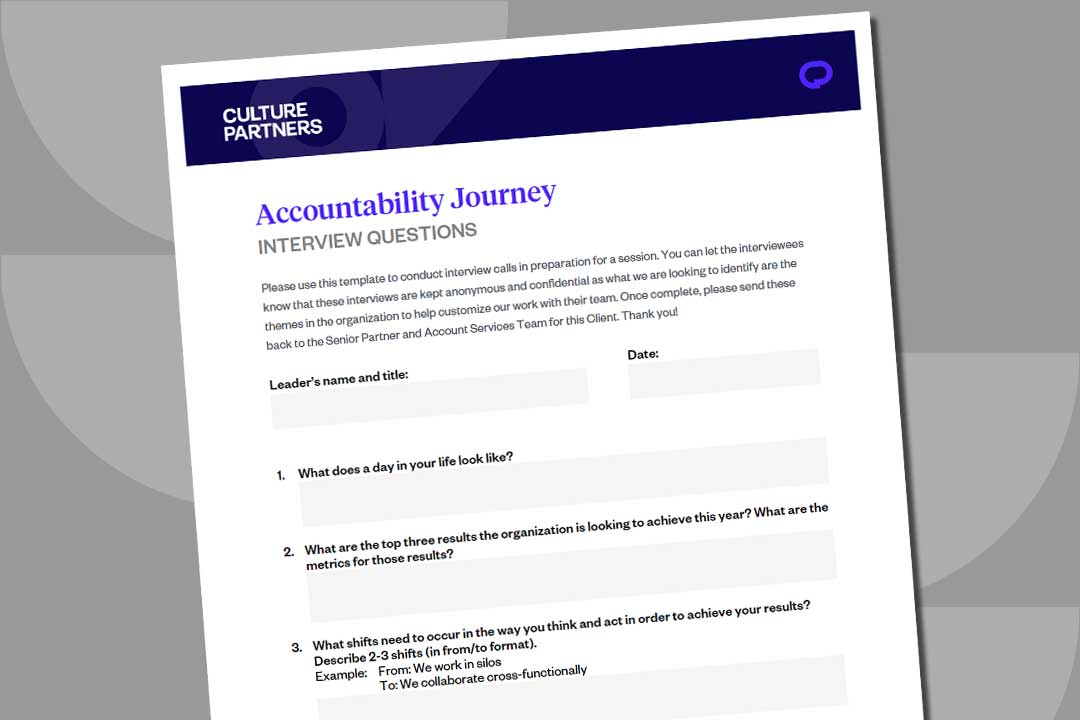 This document details the list of questions that will be asked in preparation for the Accountability Workshop. Questions focus on top results for the organization, the shifts needed to achieve those results, and the state of accountability and morale in the organization today.