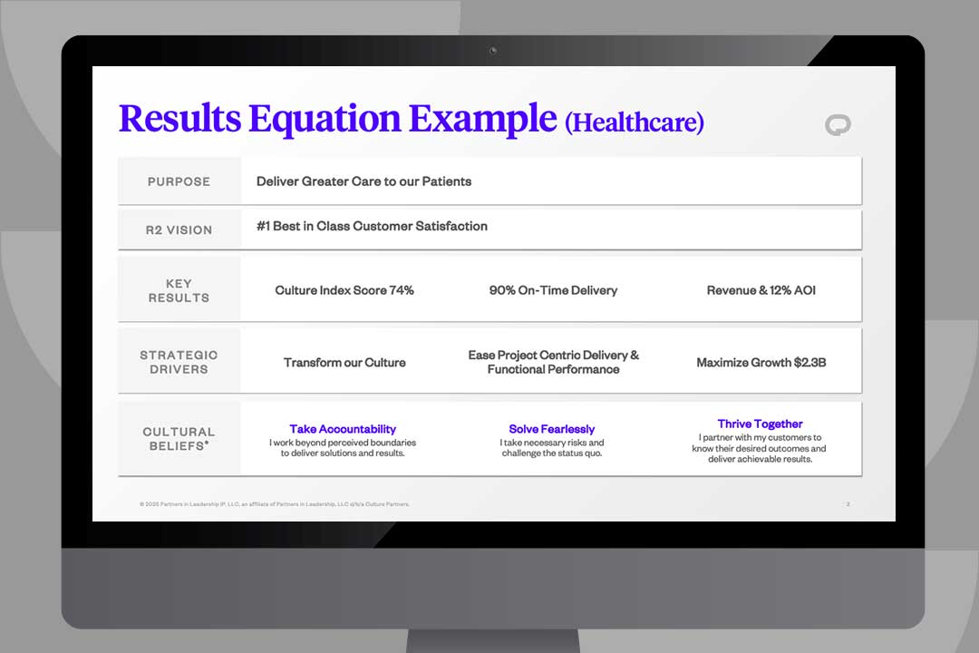 This PowerPoint presentation contains three examples of Results Equations from different industries (Financial Services, Healthcare, and Manufacturing).